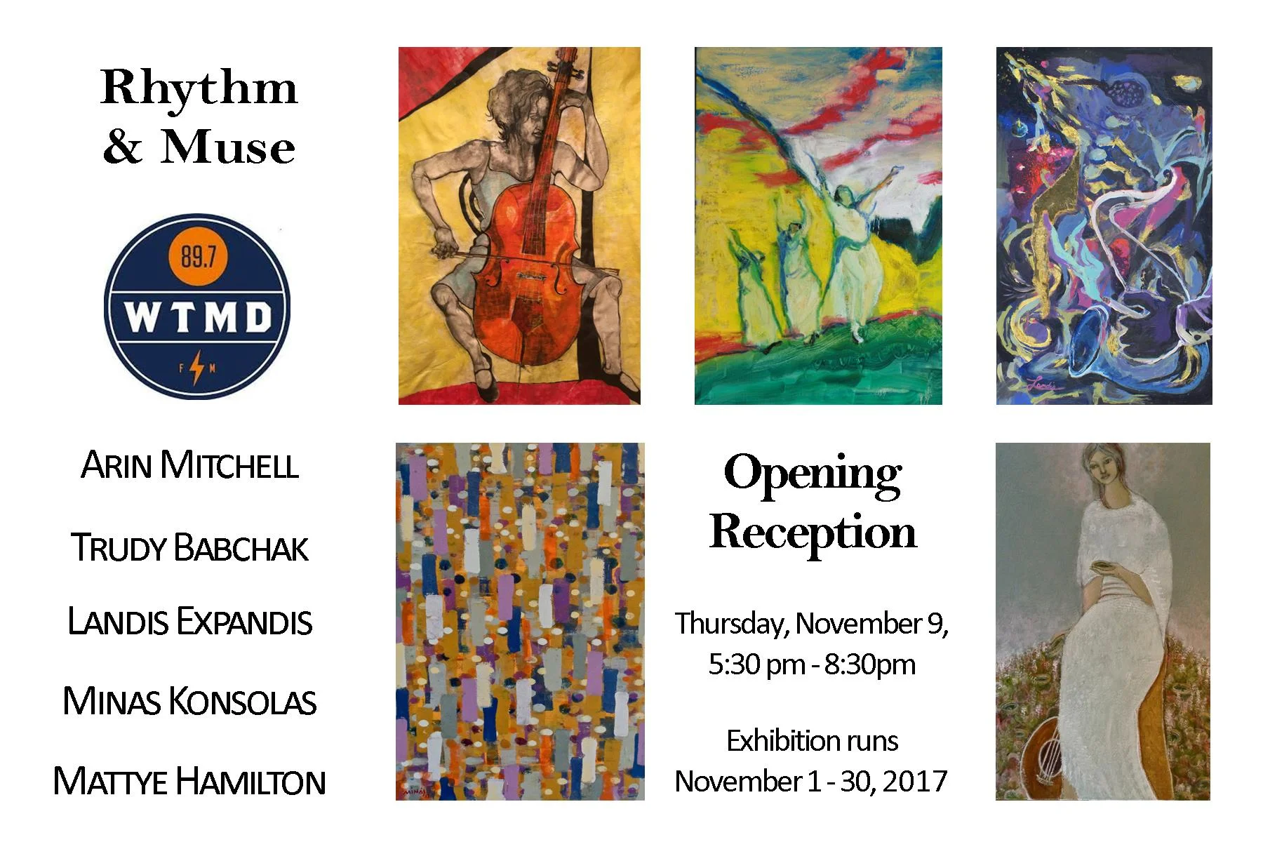Join me and four other Maryland artists for our take on musically inspired work. This show is at corporate headquarters for WTMD, the area's premiere radio station for roots, rock, alternative, and local music. Hope to see you there!